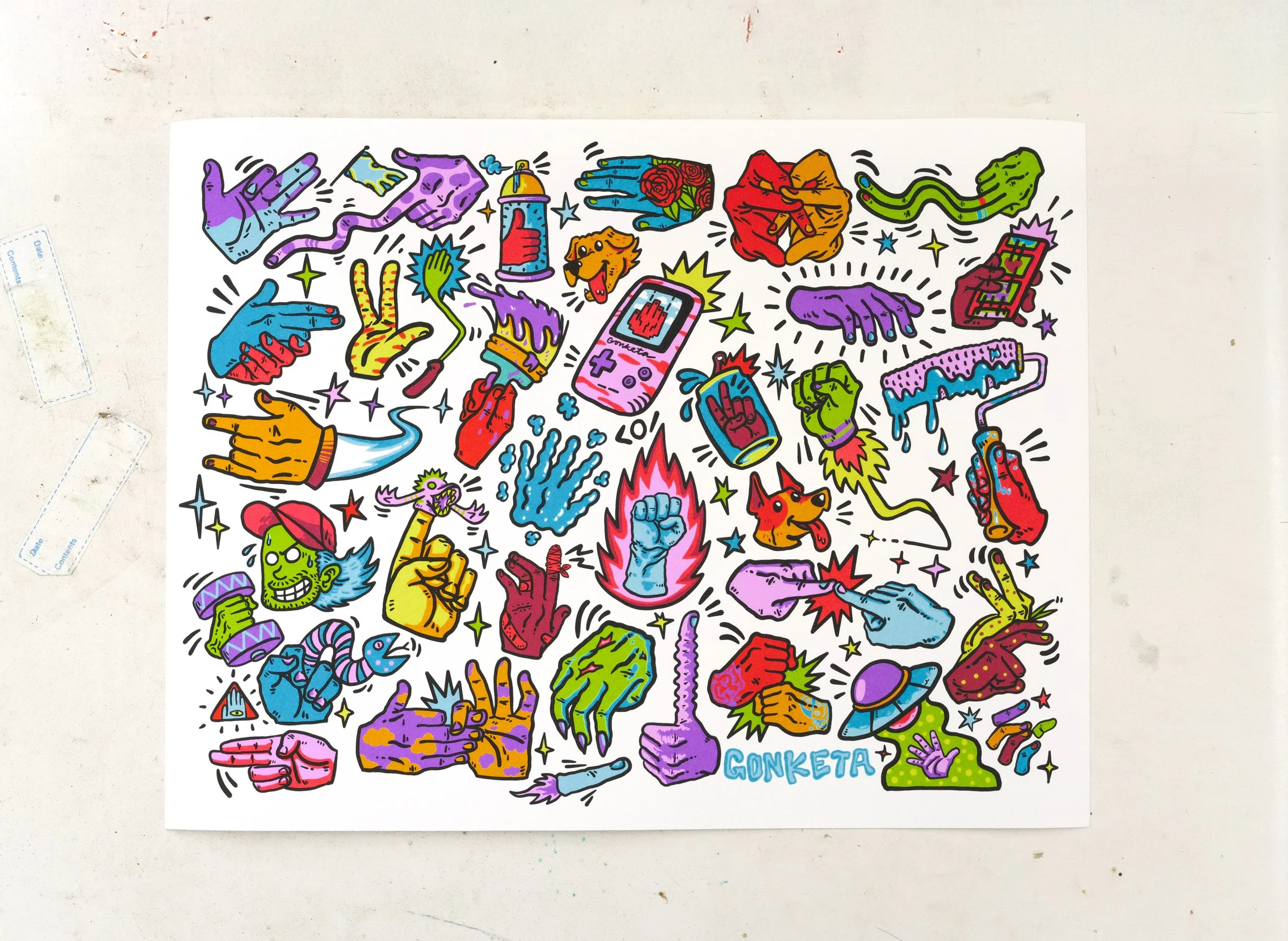 NWDP Digital Print $120.00 A week of wonder Digital print $120.00 Auslan invaders T-shirt $80.00 This way T-shirt $80.00 Day for it stubby $20.00 HASH! I need coffee! $40.00 Art catalogue 2025 $0.00